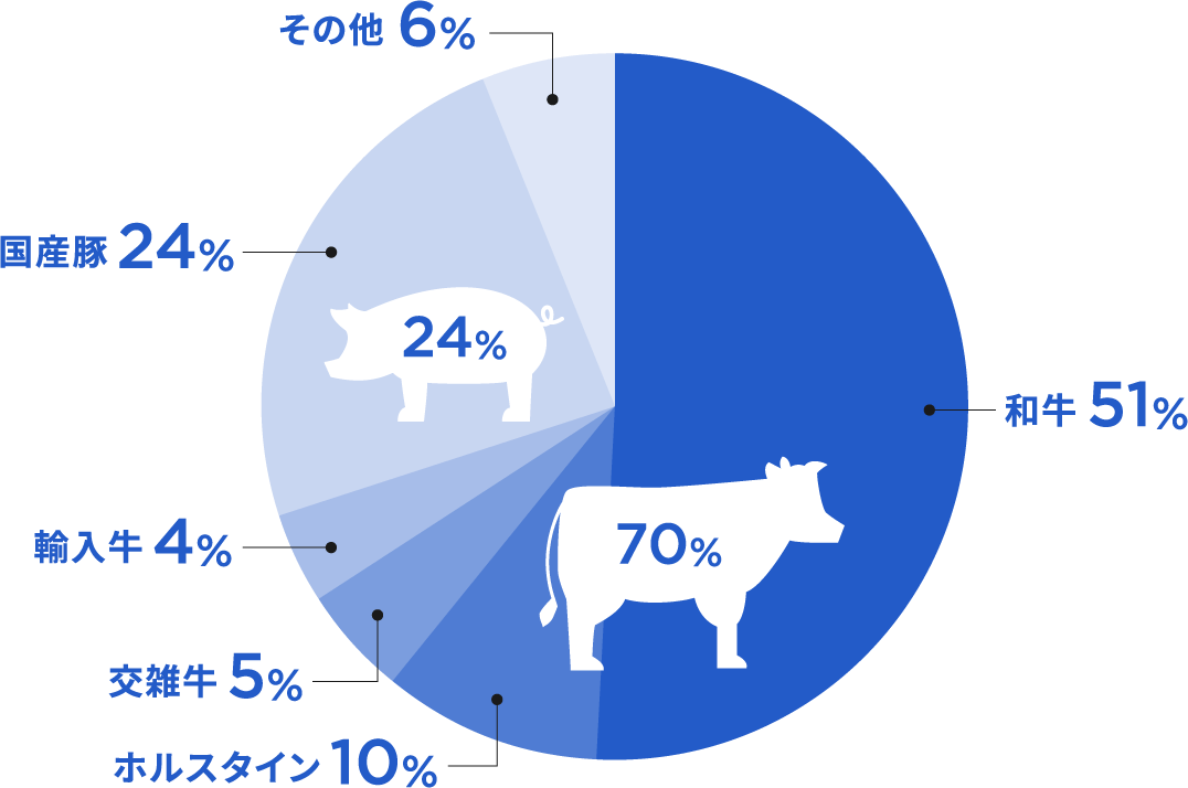 弊社では豊かな自然に育まれた「和牛、国産豚等の良質な肉のみ」を使用し