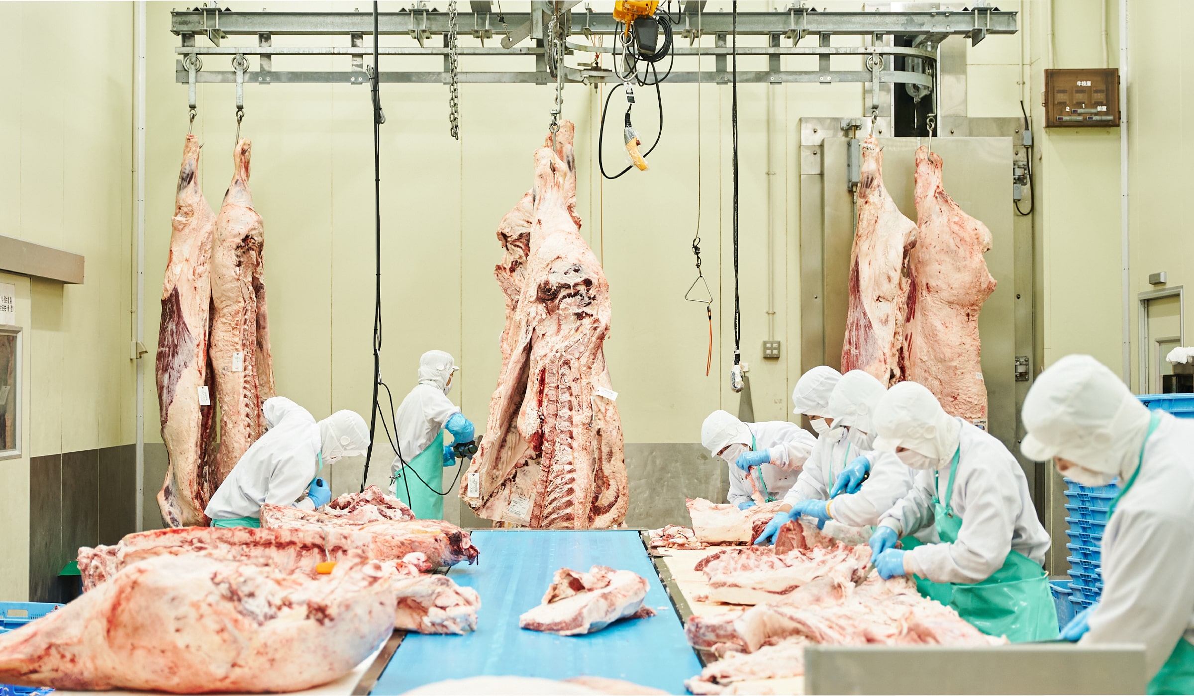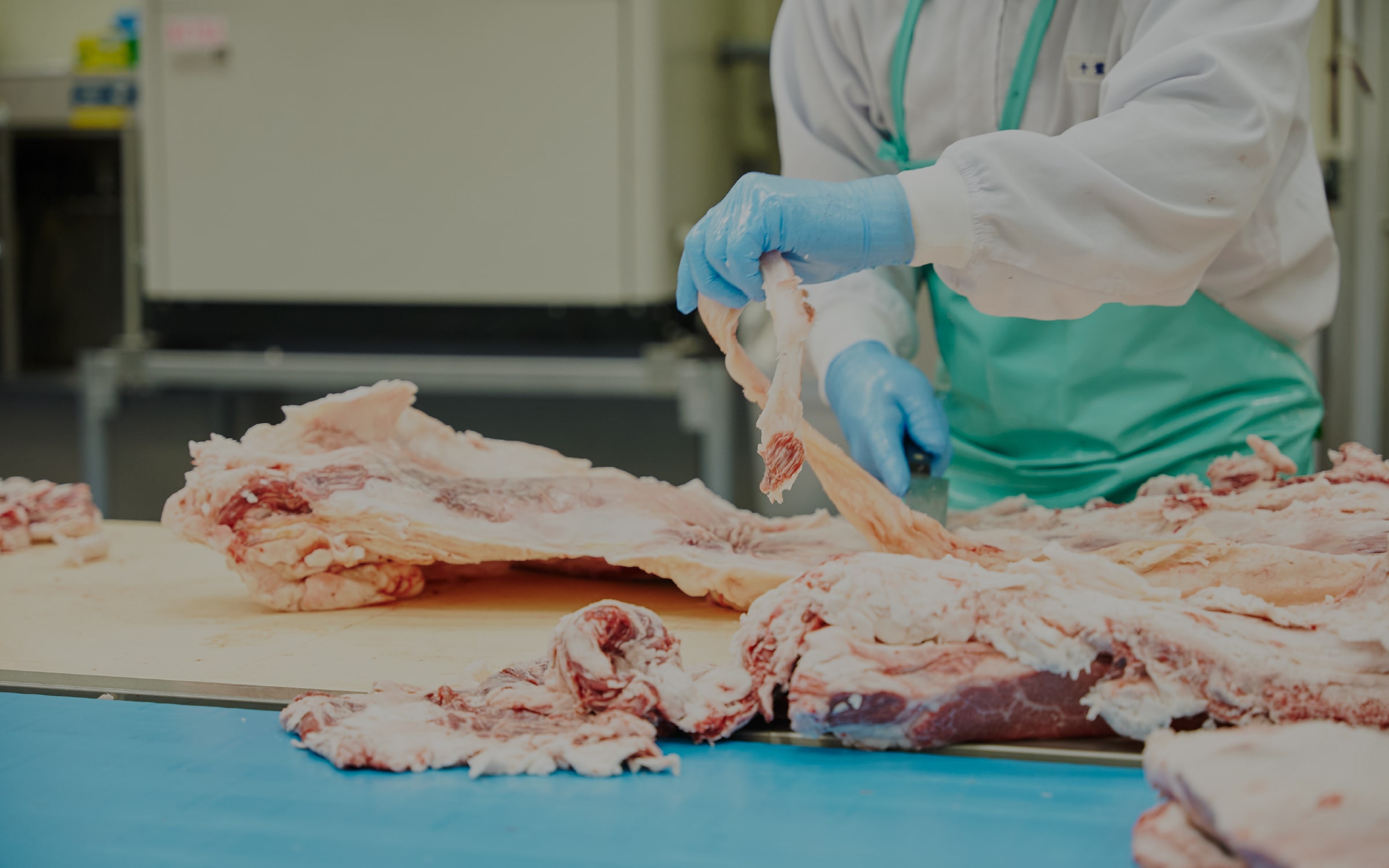 センターに入荷した「枝肉」をお客様ごとのご要望に合わせて加工いたします。衛生・鮮度などの品質管理を徹底した工場にて、素早く丁寧に取扱いしております。